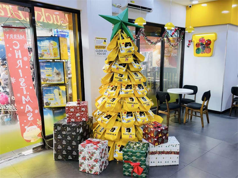 新品上市恰逢圣诞,甜啦啦门店创意拉满,用奶茶包装袋DIY圣诞树,搭配缤纷礼盒,营造浓厚节日氛围,将产品与“仪式感”深度绑定。从味觉的三重香气享受,到视觉的节日氛围营造,再到“赢好运”的情绪价值赋予,甜啦啦以苹果系列新品,为消费者打造岁末兼具味觉与情感共鸣的消费体验,也凭借销量与口碑双丰收,展现品牌在饮品创新、营销共情上的硬实力,为岁末营销交出亮眼答卷。